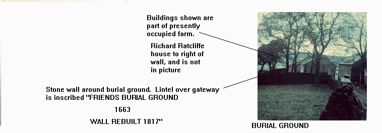 Soon after the year 1660 Richard Ratcliffe, who has already been mentioned, provided a piece of ground near his house at Chapel Hill as a burial ground for Friends. Ten years later we find him